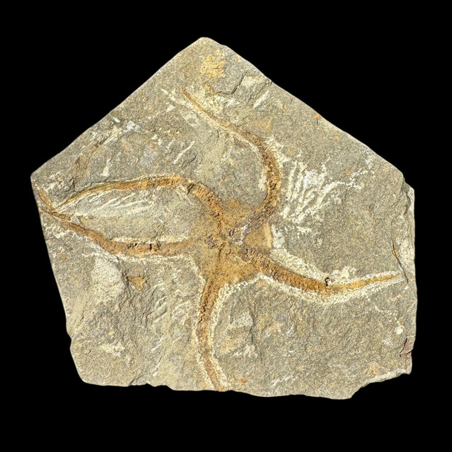 This Fossil brittle starfish specimen is in great condition featuring great detail and color. This specimen would make a great addition to any fossil collection.