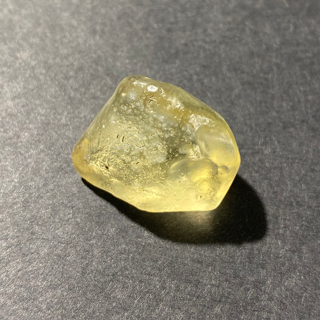 Libyan desert glass. How Libyan Impact glass came about: A Meteorite impacted in the Sahara desert about 29,000,000 years ago on the border of Libya and Egypt.The extremely high heat melted the desert sands and formed this translucent glass. It was first used by man about 10,000 years ago and was also used in an amulet by the Egyptian King Tutankhamen . Nearly pure silica (98 wt %), it is the purest natural glass in the world. It can be heated to 1700 degrees C. before it melts, 500 degrees C. Higher than any other natural glass. METAPHYSICAL PROPERTIES: Increases sales and profits. Creates good luck; especially spiritual. Helps create new ideas and balances the nervous system. This specimen features beautiful translucence and great shape. This Libyan desert Glass specimen is in great condition featuring beautiful color and transparency.