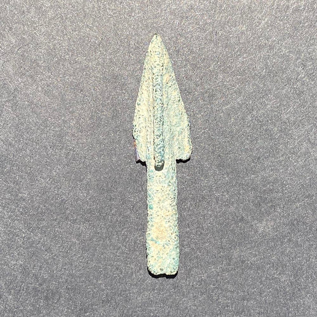 This is an authentic Roman bronze arrowhead, also referred to as a "Trilobate" which means that it has three equal wings or blades that are typically placed at equal angles.