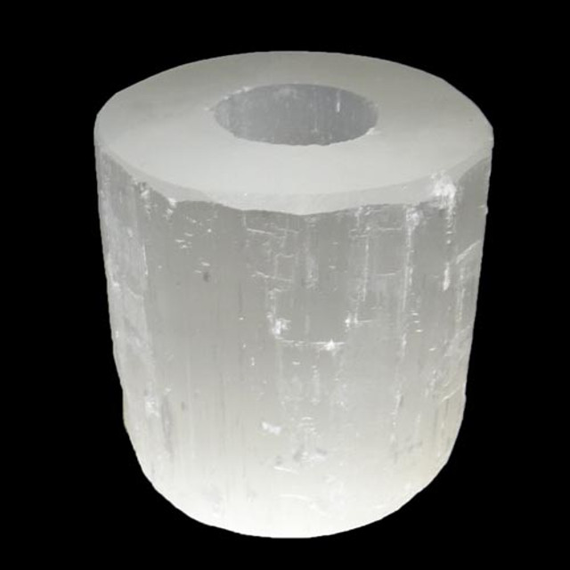 This selenite candle holder is made from a rough piece of clear Selenite. It uses a tea-light candle.The hole has been drilled extra deep into the candle holder to ensure maximum glow and luminosity from the candle light.