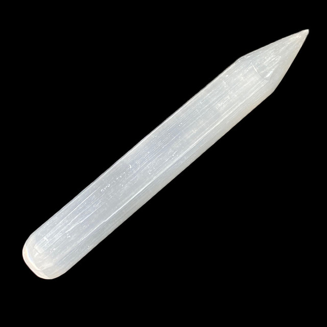 Selenite massage wand made from high quality selenite. This wand is rounded on one end and pointy on the other making it ideal for massage and targeting pressure points.